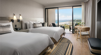 Located on the second and third floors, rooms feature two queen beds, a bathroom with a shower, and a private patio or balcony overlooking the Pacific Ocean, South Ponto Beach, Highway 101 and Batiquitos Lagoon. Additional amenities include a 65” flat-screen TV, Tivoli Audio Model One Bluetooth and Spa Alila bath amenities.
