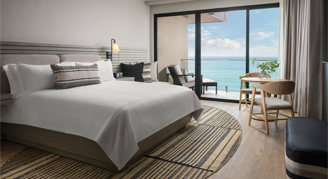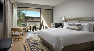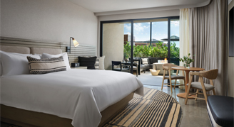 Located on the first floor with quick access to the beach stairway, pool deck and The Pocket, rooms feature one king bed, a bathroom with a shower, and a private patio with views of the pool and ocean. Additional amenities include a 65” flat-screen TV, Tivoli Audio Model One Bluetooth and Spa Alila bath amenities.
