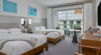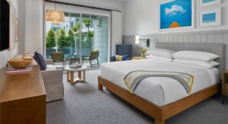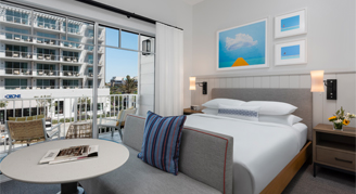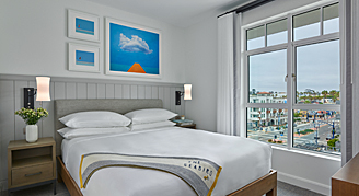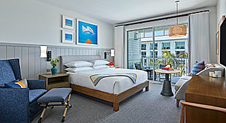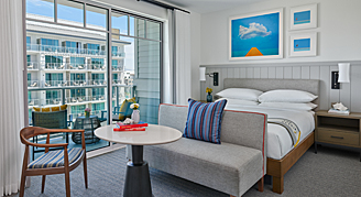 Rooms feature colorful coastal-inspired décor, one king bed and city views from your private balcony.