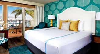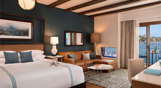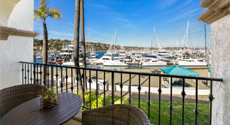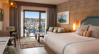 Beautifully appointed, this suite is a great getaway to cozy up in front of the fire and take in views of the Pt. Loma Marina on your waterfront balcony.