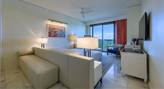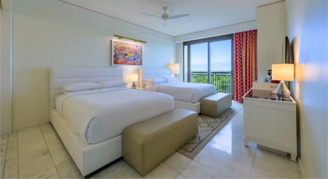 Rooms provide a fully furnished balcony with a view of the ocean, and are located in the East Tower and West Tower. Room color may vary.