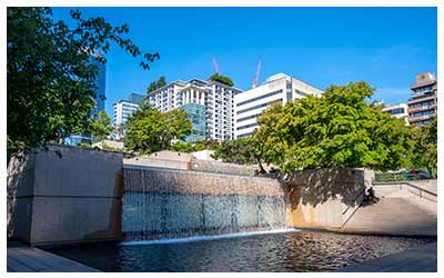 Built for Olympic athletes for the 2010 Winter Olympic Games, Olympic Village is now one of the greenest communities in the world, using solar heating and green roofs. Olympic Village is currently comprised of residences, parks, and shopping. Here you can walk the False Creek Olympic Village walkway, looping around the the eastern part of the False Creek Seawall and crossing over the Cambie Street Bridge. On this walk you will see BC Place Stadium, originally built for Expo 86 world’s fair.