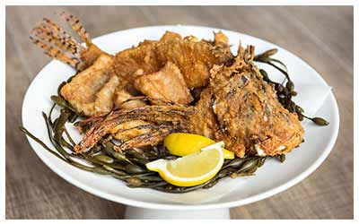 The Ritz-Carlton O'ahu, Turtle Bay features a restaurant called Beach House by Roy Yamaguchi that offers both prix xixe menus and à la carte menus. The prix fixe is very reasonably priced and includes an appetizer, entrée and dessert. There is even a vegan prix fixe menu! The ala carte menu has an assortment of food to choose from, including some fun items such as the “Not So Teri-Roll" and our personal favorite Crispy 50th State Chicken. Best of all, Beach House by Roy Yamaguchi sources most of the fish they use from local Hawaiian fishing fleets, so the seafood is very fresh and very Hawaiian.