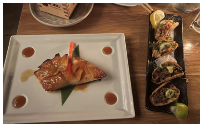 From fast food to fine dining, I found what I was craving in Beverly Hills. No matter how long a visit I have in LA, In-N-Out Burger is my must-hit burger joint. This famous Southern California food chain is known for its secret menu. A Neapolitan shake, animal fries, and animal sauce on my burger (In-N-Out’s signature concoction of cheese, mayo and sweet pickle relish) are my favorites; I just make sure to grab extra napkins for anything ‘animal style.’ I was excited to have booked a reservation at Nobu, a favorite steak and sushi restaurant among celebrities. The service was assiduous and the trademark black cod and bite-size mini tacos and were delectable!