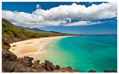 The vast expanse of Maui’s Makena Beach explains why locals refer to this beach as “Big Beach." Nearly 2/3 of a mile long, Makena Beach is refreshingly undeveloped and pristine. This is a place where you can appreciate its seclusion and beauty without having to compete with other visitors claiming beach blanket space at resort beaches during the high travel season. With its white sands and commanding views of neighboring islands, Makena Beach is a must-see when visiting the Island of Maui.