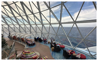 AquaDome: In addition to being an engineering marvel, the AquaDome contains a space unlike anything ever attempted before. During the day, the AquaDome’s Overlook Lounge provides an atmosphere that is all about solitude and appreciation for its highly expansive 180-degree views of the sky and ocean. At night, the AquaDome transforms into the ultimate nighttime cruise destination, with water-themed shows within the AquaTheater. This neighborhood is also home to the AquaDome Market which is Royal Caribbean’s first food hall experience that includes delicious specialties (such as multiple varieties of mac & cheese, Asian bowls and a creperie), as well as epic ocean views.