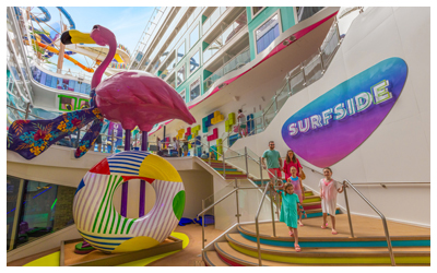 You and your family will not be bored while sailing Icon of the Seas. This ship has been designed with 8 distinctive neighborhoods that are focused on creative, interactive and exciting diversions. The Royal Promenade is just one of these neighborhoods. Here are the others: