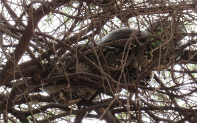 During a night safari (on the trip the only place we were allowed or had the option for a night game drive was in Lake Manyara National Park in Tanzania), we saw hyenas, elephants, porcupines, genets, and a python!