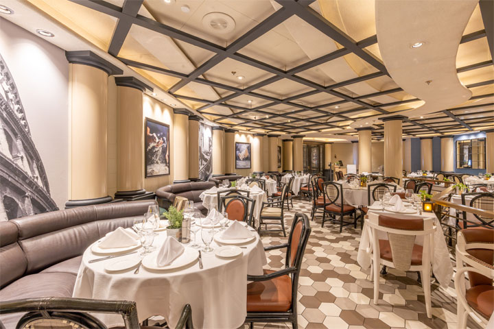 Trattoria: Welcome to Trattoria, serving rustic, home-style Italian fare and delicious freshly-cooked pizza. Combining a warm, relaxed atmosphere with fantastic food, good wine and wonderful service, Trattoria is sure to become a favorite venue on your cruise.