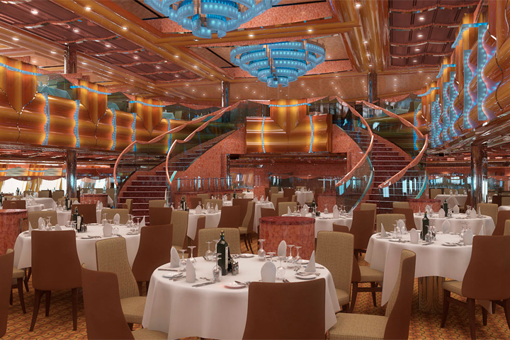 Main Dining Room: Carnival's Main Dining Room brings you a full three-course menu in an experience that’s satisfying, but never stuffy. Drop in nightly and enjoy a rotating menu of delectable favorites like steak, roasted duck, scallops, prime rib, and, of course, sinfully delicious desserts.