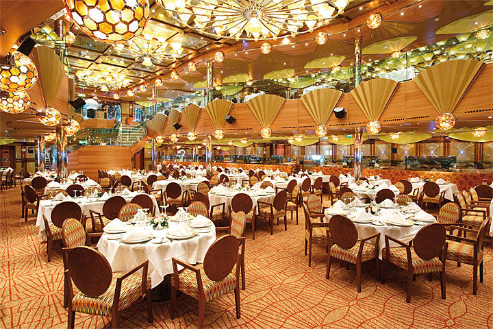 Main Dining Room: Carnival's Main Dining Room brings you a full three-course menu in an experience that's satisfying, but never stuffy. Drop in nightly and enjoy a rotating menu of delectable favorites like steak, roasted duck, scallops, prime rib, and, of course, sinfully delicious desserts.