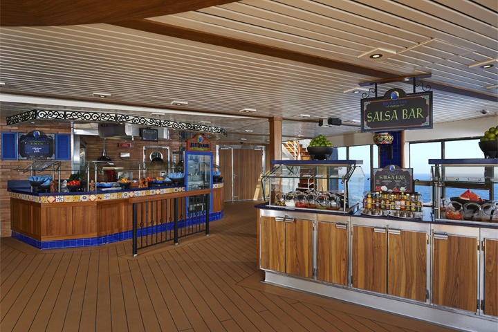 Lido Marketplace: Featuring an amazing variety of casual dining spots, each just a few flip-flopped steps from the last, Lido Marketplace always has a special something ready to satisfy your latest craving spectacularly. Here, Carnival does it with dozens of what-to-eat options... great choices like BBQ, a deli counter, salad bar, an Asian station and a pasta bar... plus one spot where the chef serves up a different surprise daily! At Lido Marketplace, there's tons of indoor and outdoor seating made for gathering around, so you can enjoy your personal faves in your favorite company for lunch or dinner, or even breakfast! Lido's also where you can find soft serve, frozen yogurt and fresh pizza 24 hours a day.