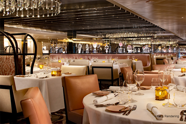 Dinner on the Edge: Above every deck of the ship exists an extraordinary, sky-high dining experience that Celebrity calls Dinner on the Edge. When the Magic Carpet ascends to the top of the ship, on special evenings embark on an exhilarating al fresco culinary journey that's a feast for your eyes, your appetite, and your sense of wonder. This restaurant is available for an additional cost and reservations can be made once onboard.
