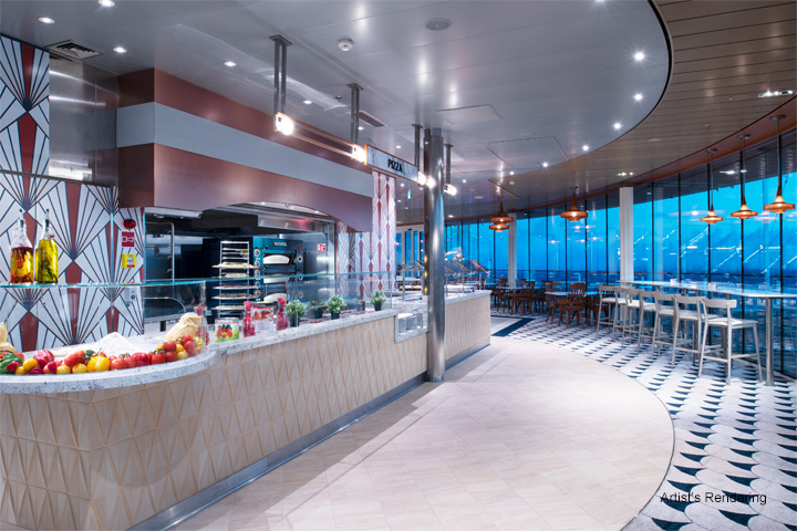 Oceanview Café: Featuring sweeping two-story, floor-to-ceiling windows, the Oceanview Café lives up to its name more than ever before. One of Celebrity's signature favorites, they've added more live action stations, including an Asian stir fry station with flavors inspired by the spice route and a bakery serving up fresh selection from the oven.