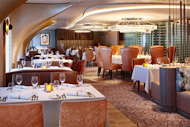 Raw on 5: Using both raw and refined elements with earth tones, pearlescent accents, and natural textures, Celebrity has created a sophisticated yet approachable restaurant. The dramatic raw bar display at the entrance showcases an abundance of oysters, crab, and lobsters to choose from. The menu, also available at the Magic Carpet when positioned on deck 5, will feature more casual offerings like Shrimp Salad, their signature Lobster Roll and sushi and sashimi prepared by our expert sushi chefs. This restaurant is available for an additional cost.