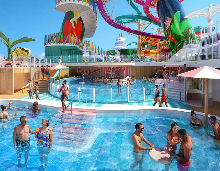 Hero of the Seas℠, where you can create an unstoppable, incredible, revolutionary family vacation. Experience adventure beyond imagination, with nine pools, new waterslides and brand-new experiences, and featuring the first funnel raft slide at sea. Culinary aficionados will have plenty to enjoy, with a record-breaking 28 dining venues. Everything you need for the all-time, prime-time, family time, right at your fingertips. Hero of the Seas, arriving August 2027 in Miami, Florida.