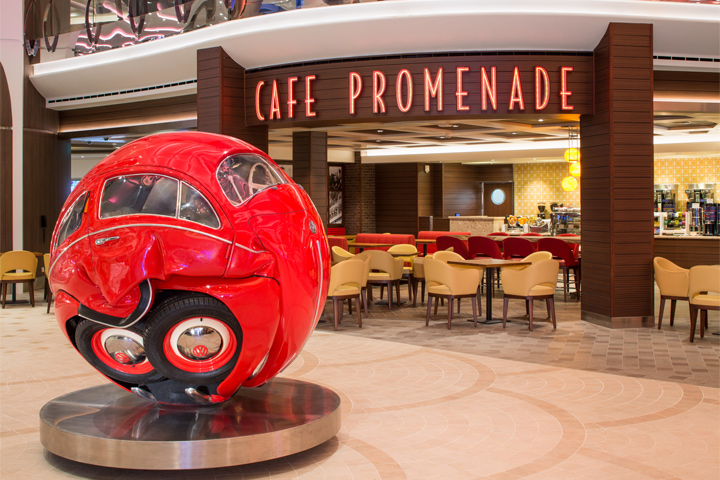 Café Promenade: The multi-level Royal Promenade is the heart of the ships – and the best spot for people watching. Pick a table with a view at Café Promenade, serving Starbucks or illy coffee, snacks, pastries and sandwiches throughout the day and into the night – so you can enjoy the action when you please.