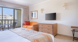 Rooms feature partial ocean or ocean-views with a larger terrace, along with a separate bathtub and walk-in shower, as well as a private balcony.