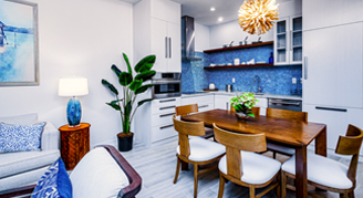 Residences feature an ocean view. Additional amenities include a separate living and dining area with a fully equipped kitchen and an in-suite washer and dryer.