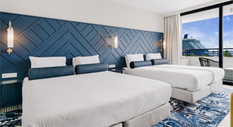 Located on various floors, all Ocean-View Rooms, consist of a room with a king size bed and two single beds. Each bedroom comes with a bathroom with a walk-in shower, a private balcony, a hair dryer, air conditioning, cable TV, coffee and tea facilities, a safe, area rug, a direct dial telephone, USB ports for phone charging and free access to wireless internet.