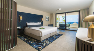 Located on various floors, all Deluxe Oceanfront Rooms have king size beds, a bathroom with walk in shower or bathtub, private balcony, hair dryer, air conditioning, cable TV, coffee and tea facility, safe, area rug, direct dial telephone, USB ports for phone charging and free wireless internet access. Rooms are available with a frontal sea view and a private balcony, as well.