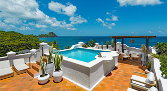 With their own large private rooftop and swimming pool, these are some of the most unique and spacious suites found anywhere in the Caribbean. All come with endless ocean and mountain views. A large master bedroom leads off the living/dining room, kitchen and huge private verandahs offer great private dining options. Bedroom decor is in natural, rich contemporary Caribbean colors. These suites will suit those looking for ultimate luxury with a difference. Families will also love the space and the self contained design and the roof garden* gives a family the additional space to spread out.