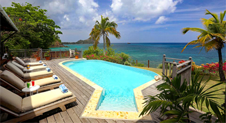 A tropical house built in1990, Saman House sits in one acre of landscaped gardens on a cliff-top, facing west over the Caribbean to Pigeon Point, and north to Martinique. Benefiting from all the facilities and services of Cap Maison yet set within its own private grounds Saman House is a stylish holiday residence. Spacious and attractively furnished in a relaxed tropical style, Saman House provides the perfect vacation retreat. Decor is simple, tiled floors; whitewashed walls, wooden jalousie shutters and ceiling fans in every room. The pool, deck and barbecue are situated with the sea below; an ideal spot for snorkeling. A safe swimming beach at Smuggler's Cove is a two minute walk away. Four bedrooms with ceiling fans and en-suite bathrooms with showers, open onto the verandah which extends the length of the house and all overlook the sea.