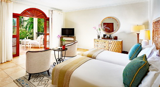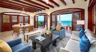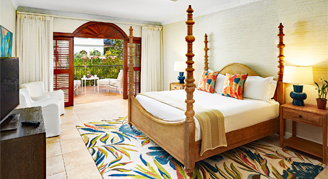 Suites overlook the gardens and feature a partial view of the ocean. Additional amenities include a covered outdoor living area (some with outdoor shower), and decor that features Caribbean colors and style.
