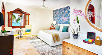 Rooms and suites are decorated in boutique style with a warm, inviting feeling. All accommodations are furnished with hand-painted tiles and rich fabrics, and designed with a warm, rustic Spanish Caribbean style. All accommodations feature a walk-in shower and some suites include a bath.