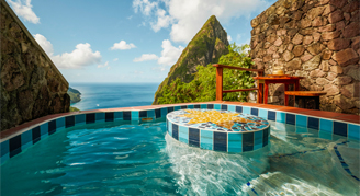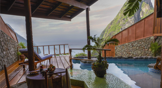 The Gros Piton Suite, measuring 800 square feet, offers a romantic private plunge pool. Rooms are two levels and may require walking up and down stairs.