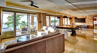 Suites feature an ocean view. Additional amenities include a living room, dining room, a pool table and a spacious terrace.
