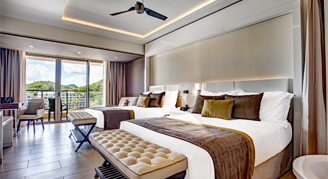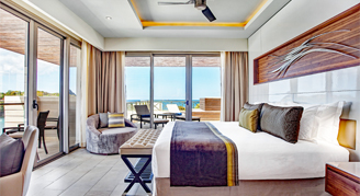 The resort offers 287 guest rooms. Room amenities include complimentary Wi-Fi, a balcony or terrace, 24-hour room service, a mini-bar restocked daily, and premium bedding. Diamond Club accommodations include personalized check-in and checkout, butler service, dedicated room locations, an exclusive beach area with dedicated bar and waiter service, and access to the private Diamond Club Lounge. Children under age 2 stay free in room using existing bedding. Cribs and rollaway beds are available upon request.