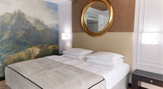 Experience wonderful hours in Munich with separate sleeping and living areas. Optical separations turn this suite into a cozy haven with carpet or wooden flooring. The quiet location with the view over the inner courtyard guarantee relaxing days along with true Royal Bavarian Flair.
