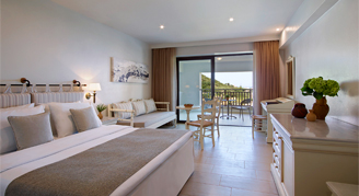 With views of the garden & the mountains, the pool or the Cretan sea, relax in a spacious and functionally designed setting featuring modern decorative elements and high-quality amenities.