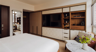 Guests will find generous living areas with ample seating — ideal for entertaining or unwinding — and bedrooms designed for serenity. The spa-inspired bathrooms include double marble vanities, rainfall showers, and luxurious Natura Bissé bath amenities. Select suites also feature an onsen soaking bathtub and yukata robes, elevating the experience of relaxation and wellness.
