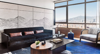 Overlooking cityscape vistas, the view truly shines when the sun sets and Barcelona lights up. Beyond the high-end comforts of the bedroom, marble bathrooms offer a spa-inspired experience with glass panel rainfall showers and Natura Bisse' bath amenities.