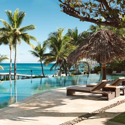 This deluxe private island retreat is set on one of the most stunning islands in the Mamanuca Island group. It features long, white-sand beaches framing pristine waters that are ideal for snorkeling, diving, kayaking, paddle boarding and swimming. Accommodations are comprised of 30 chic, air-conditioned villas and six stunning three-, four- or five-bedroom private residences, which are designed to exude natural glamour and relaxed refinement. Additional features include the iconic Rocks Bar, which overlooks the tiny island of Vomo Lai Lai, two exceptional restaurants, a kids' club and Baby Butler service, a 9-hole pitch and putt golf course, luxurious spa, air-conditioned gym and outstanding Fijian hospitality throughout. Rates include daily breakfast, lunch and dinner with non-alcoholic drinks included, use of non-motorized water sports and activities, including daily snorkeling trip and equipment, and complimentary daily wash and fold laundry service. In addition, the hotel hosts a weekly cocktail party with Meke performance and kava ceremony.