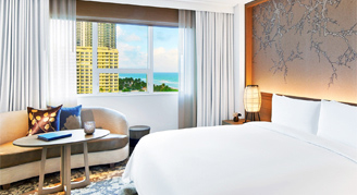 Ocean-View Rooms are appointed in contemporary and tranquil Japanese décor. With modern comforts such as a waterfall shower, you will be sure to find peace in Miami Beach.