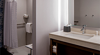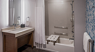 Enjoy your Tampa visit inside this 460-square-foot, ADA-friendly room with an accessible tub, one king bed, a Cozy Corner with sofa bed, and work area.