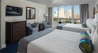 The beautiful Tropical-View Room with Balcony and Two Queen Beds at Island Grand overlooks the Garden Courtyard.