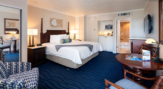 Each room includes a wet bar with mini-fridge, microwave, coffee maker, toaster, dishware, in-room safe, tub/shower and a flat-screen TV with cable.