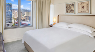 These newly renovated rooms feature a view of the Ko'olau Mountains, the ocean and skyline of Honolulu. Rooms are located on floors 8 to 15.