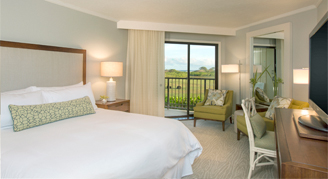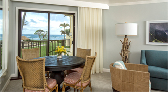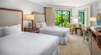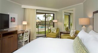 Wake up to a vibrant view of the resort's sparkling pools, swaying palms and the Pacific Ocean beyond in these newly remodeled rooms. Designed with bright colors and modern island style, these rooms feature coral-accented balcony seating and locally inspired artwork that reflects the spirit of Kauai.