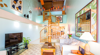 Rooms feature garden views and partial ocean-views from the private lanai. Some units offer a loft, while all include ceiling fans. Suites come equipped with a full kitchen and include two bathrooms.