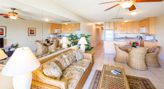 Rooms offer more space for families or those traveling together and feature views of the resort and West Maui Mountains and Mt. Haleakala. Some units include lofts. Suites come equipped with a full kitchen and include two bathrooms.