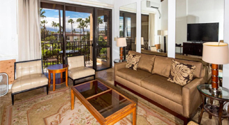 Rooms offer more space for families or those traveling together. A private lanai opens to a courtyard view of tropical foliage, a waterfall and fountain pond or resort views. Some units add more privacy with a loft bedroom. Suites come equipped with a full kitchen and include two bathrooms.