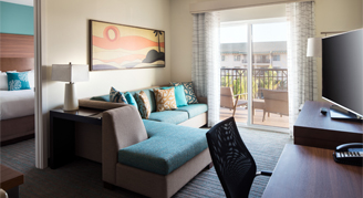 Experience tropical tranquility with modern furnishings and island-inspired décor.