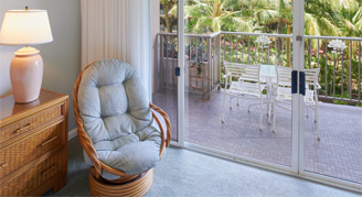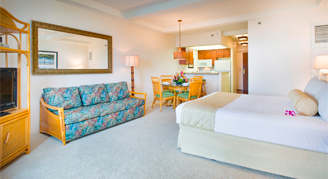 Studios feature an ocean view from the lanai and upgraded furniture.
