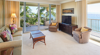 Suites feature an ocean view from the lanai, two separate bathrooms and upgraded furniture.