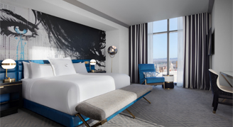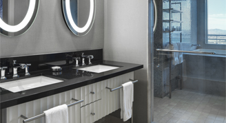 Rooms feature a 110-square-foot private terrace, city views, a decadent bathroom with a Japanese soaking tub, exhilarating shower, telescoping doors separating the bathroom from the living room, and a Sub-Zero refrigerator with mini-bar.